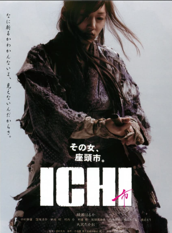 There’s a fair bit of swordplay on display, although it always comes in quick flashes of economic sword strokes. There are no drawn-out exchanges of balletic sword techniques as one might find in a Chinese film. Ichi dispatches most of her opponents in a single underhand stroke of her cane sword. I’m not going to complain, since that’s how the Japanese have choreographed their sword duels (with a few exceptions) for decades, so Ichi is really just following protocol in that respect. There aren’t any colorful villains on display or Lone Wolf and Cub-esque scenes where Ichi levels an entire army. What we get is fun, although I felt really cheated at the end when Ichi sat out most of the climax. Boo! That really brought the film down from “Pretty good” to “Eh, not bad.”